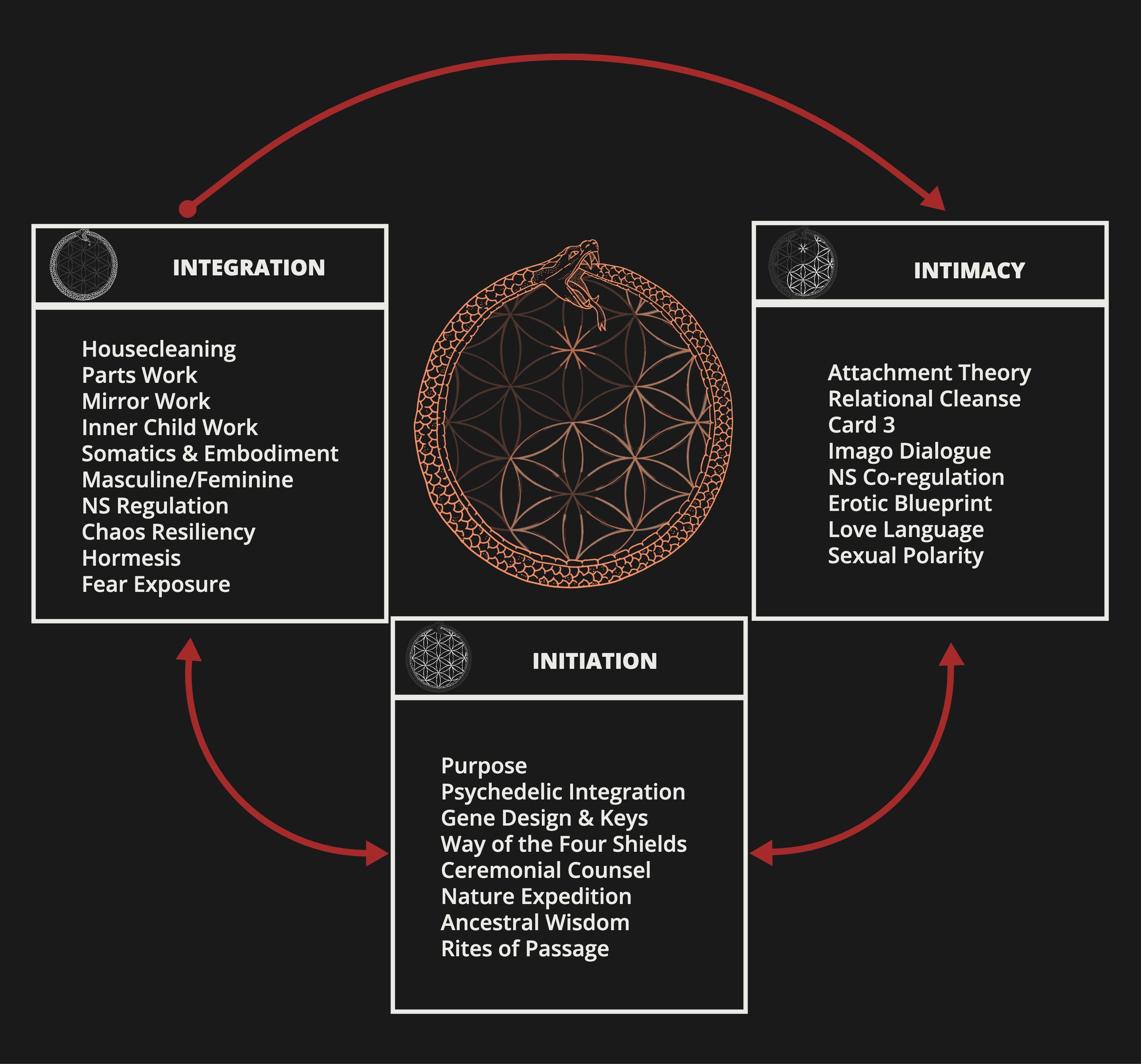 If you're single or your partner isn't ready for joint work, start with individual coaching. If you're both committed to transformation, consider couples work. If you're drawn to initiation and community, explore the men’s expedition or co-ed vigil.